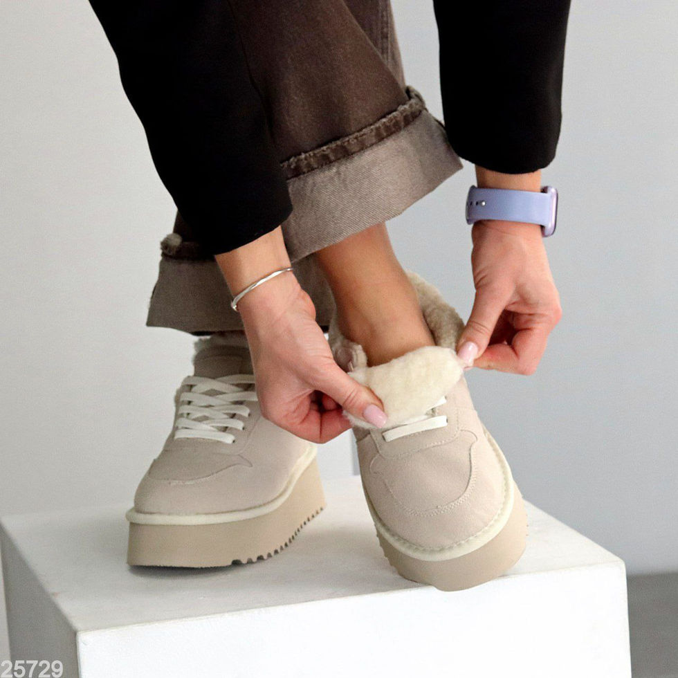Матеріал - натуральна замша / Хутро Тедді. Всередині - екохутро. Підошва - 4 см/3 см Виробник - фабричний Китай.Розмір у розмір 36-23,5 37-24 38-24,5 39-25 40-26 41-26,5.